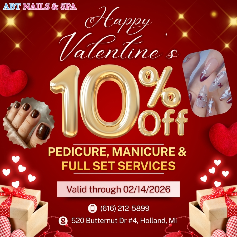 Are you looking for a nail and spa salon to get pampered with your friends or to prepare for a night in town? Don’t look further, located conveniently in Holland, MI 49424, ABT Nails & Spa is your ideal nail salon.